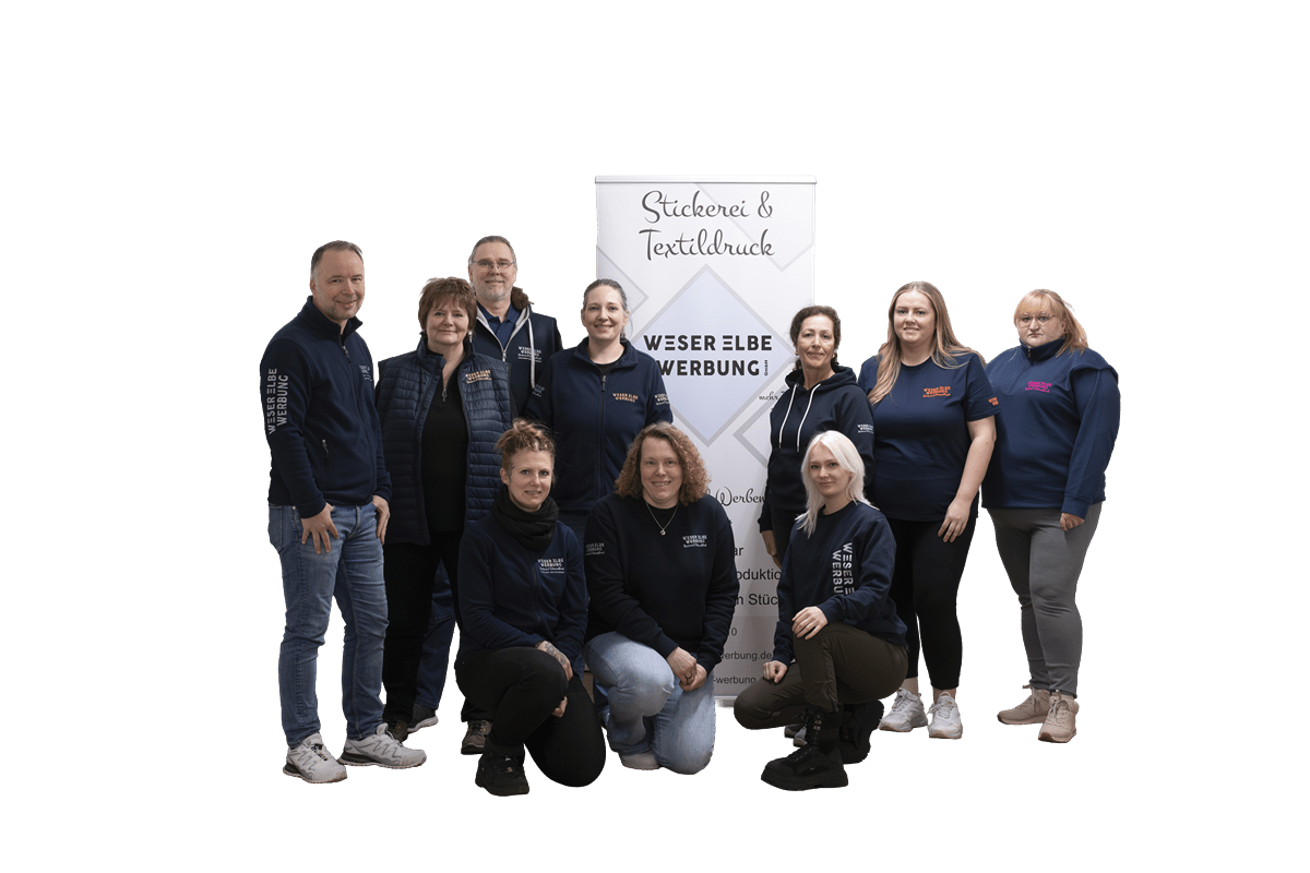 Weser Elbe Werbung steht für kreative Ideen, hochwertige Veredelung und zuverlässige Umsetzung – direkt aus der Region für die Region. Unser 10-köpfiges Team aus Gestaltern, Stickerei- und Werbetechnikprofis verbindet handwerkliches Können mit modernster Technik.